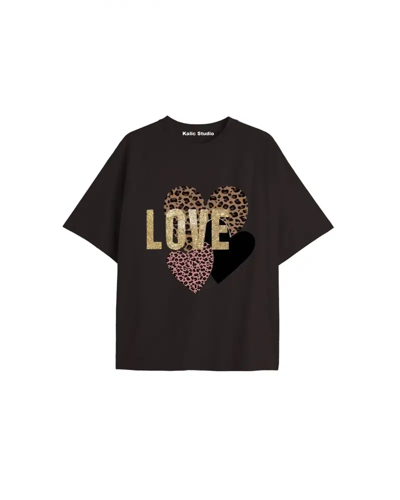Y2k vintage Leopar Baskılı Sİyah T-shirt KOD 171