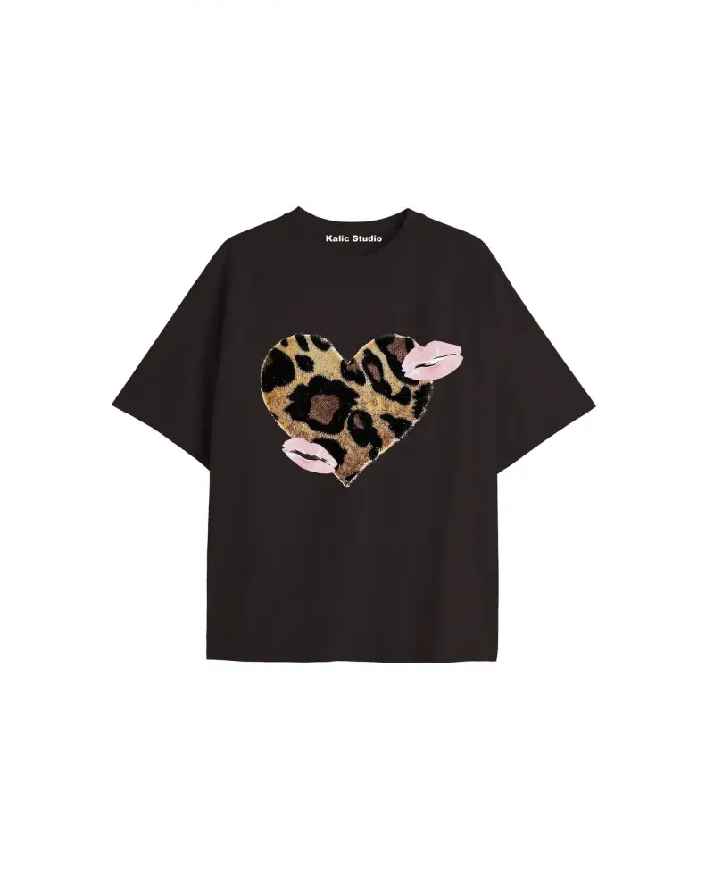 Y2k vintage Leopar Baskılı Sİyah T-shirt KOD 184