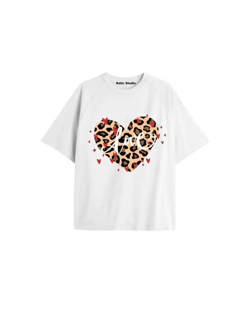 Beyaz Oversize T-shirt güneş kalp çiçek Özel tasarım