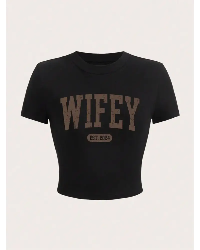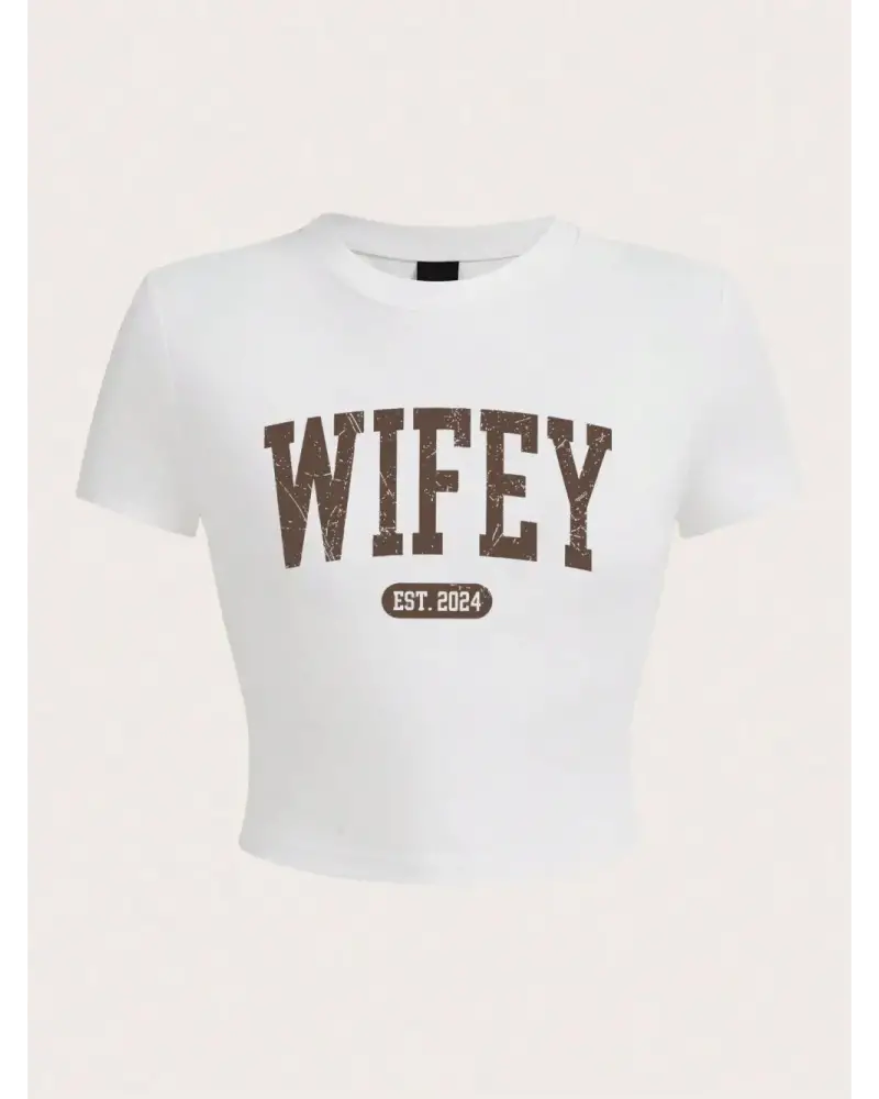 Yaz kadın kırpma t-shirt Wifey Est.2024 mektup baskı Streetwear nefes streç yumuşak kısa koll kaliteli malzeme ve konforlu kullanım sunan bir üründür. Günlük kullanım için ideal olup uygun fiyat ve hızlı kargo avantajıyla sunulmaktadır.