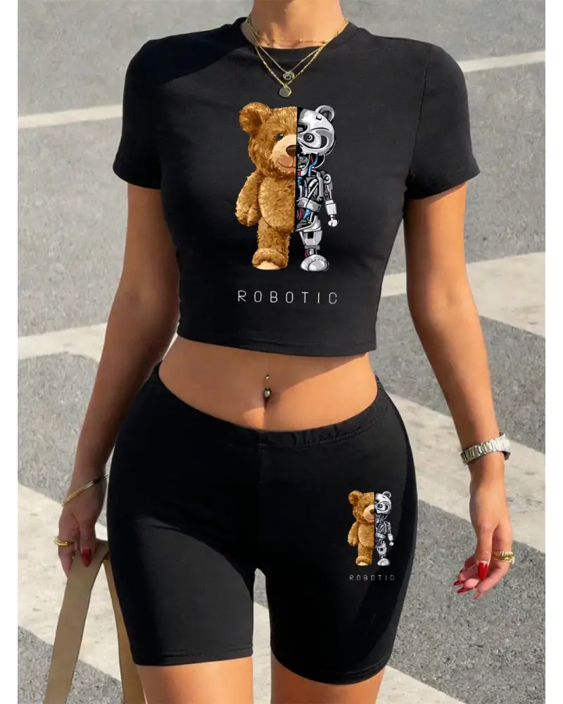 Yazlık Peluş ve Robotik Ayı Baskılı Babby Teelar Şortlar Kadın İki Parçalı Set Tişörtler Panto kaliteli malzeme ve konforlu kullanım sunan bir üründür. Günlük kullanım için ideal olup uygun fiyat ve hızlı kargo avantajıyla sunulmaktadır.