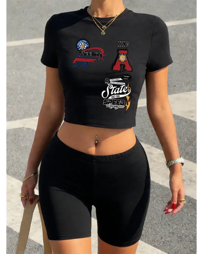 Yazlık Spor Giyim Baskılı Babby TeeTişört Şort Kadın İki Parça Takım Üst Pantolon Yumuşak İnce O- kaliteli malzeme ve konforlu kullanım sunan bir üründür. Günlük kullanım için ideal olup uygun fiyat ve hızlı kargo avantajıyla sunulmaktadır.