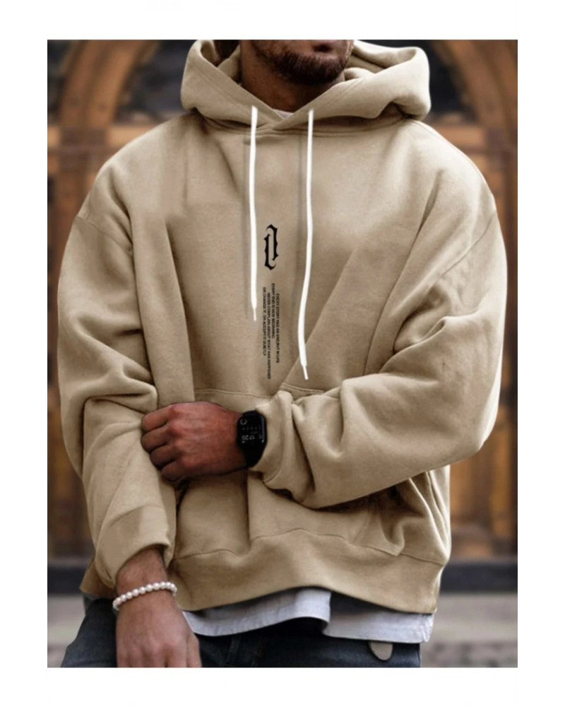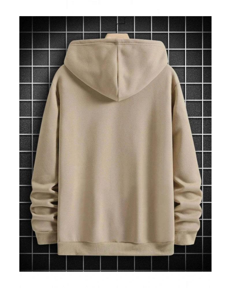 Dik Renkli Oversize Kapüşonlu Sweatshirt Bej