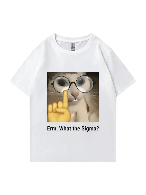 Erm, What The Sigma? Meme Funny T-Shirts Silly Cat Humor Print T Shirt Men Women Cute vintage