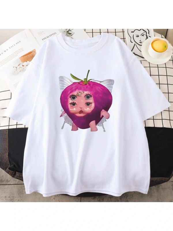 Melanie Martinez çilek sevimli grafik T shirt yeni erkek kadın's Kawaii gevşek giysiler kısa