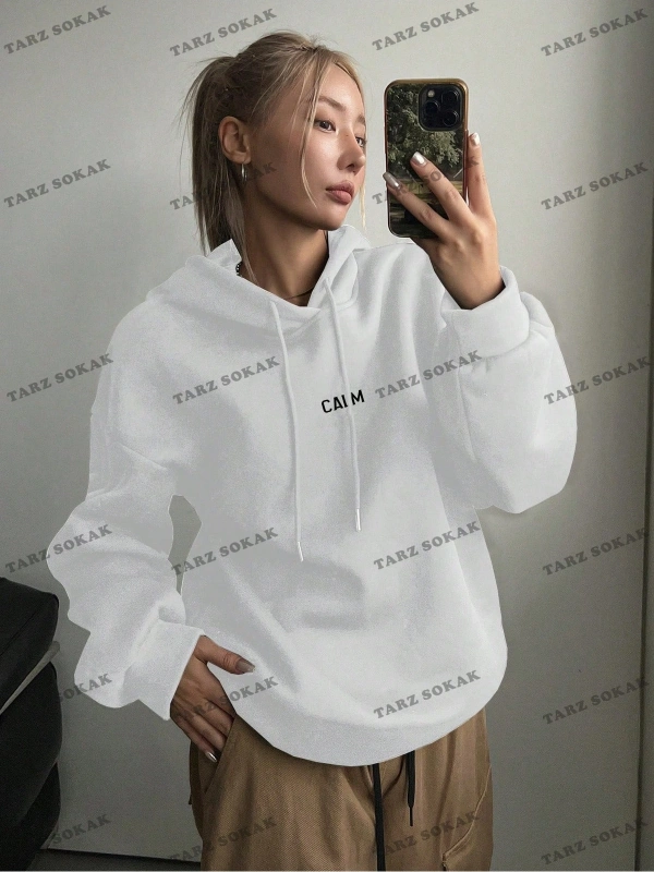 Y2K TREND SEZON BAY UNİSEX RETRO SWEATSHIRT KAPŞONLU KOD 1853 Beyaz