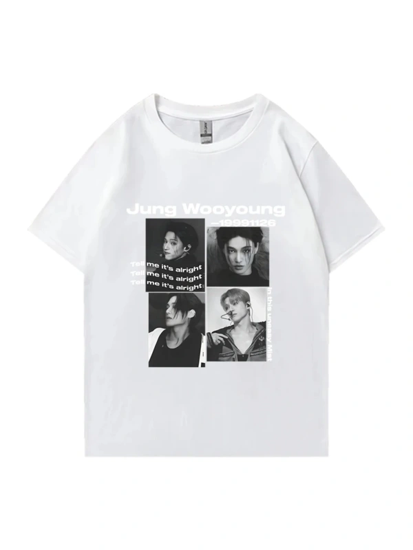 Bts Ateez Wooyoung grafik siyah tişört erkek kadın moda vintage boy kısa kollu t shirt Unisex