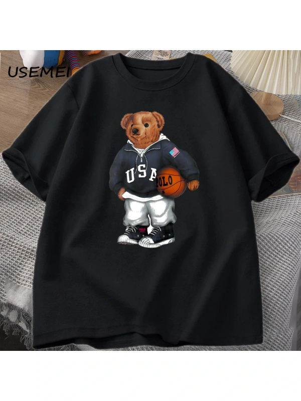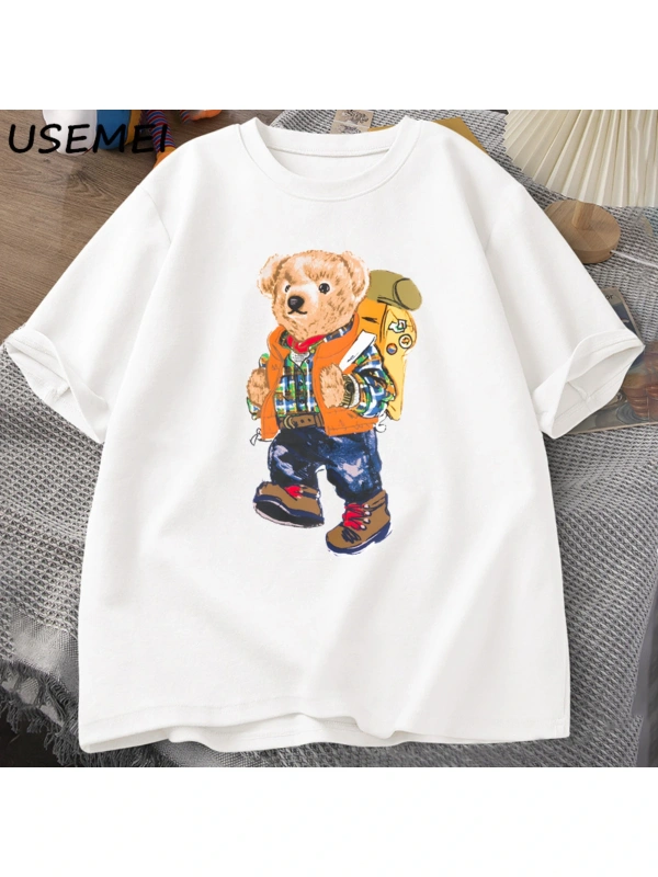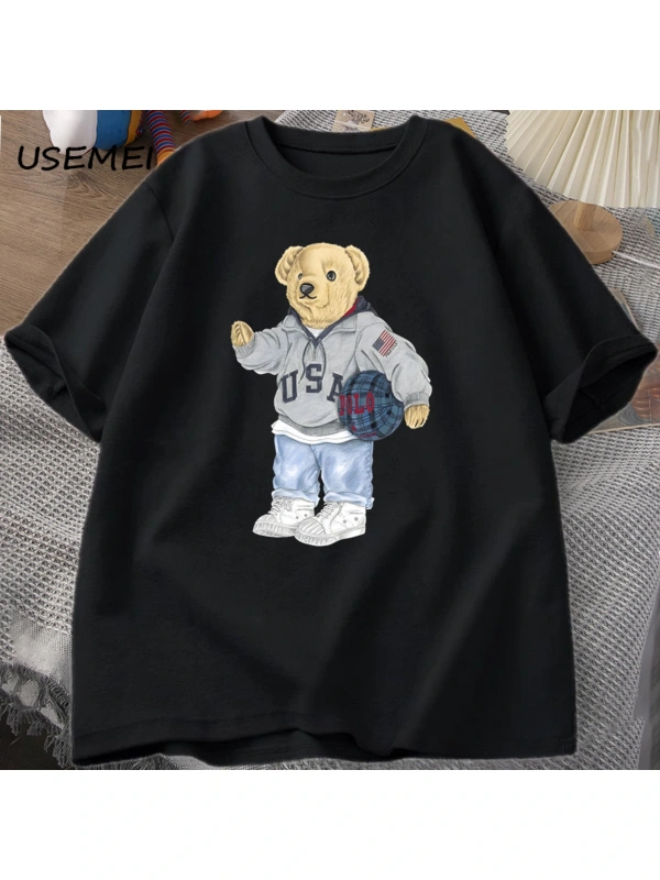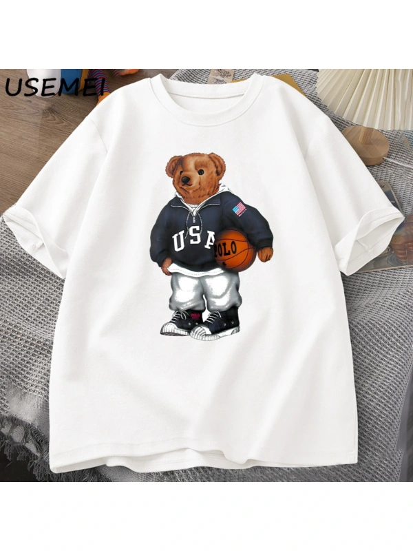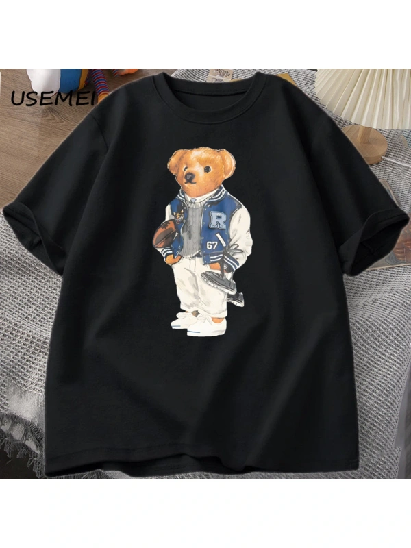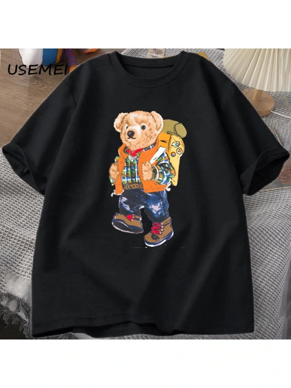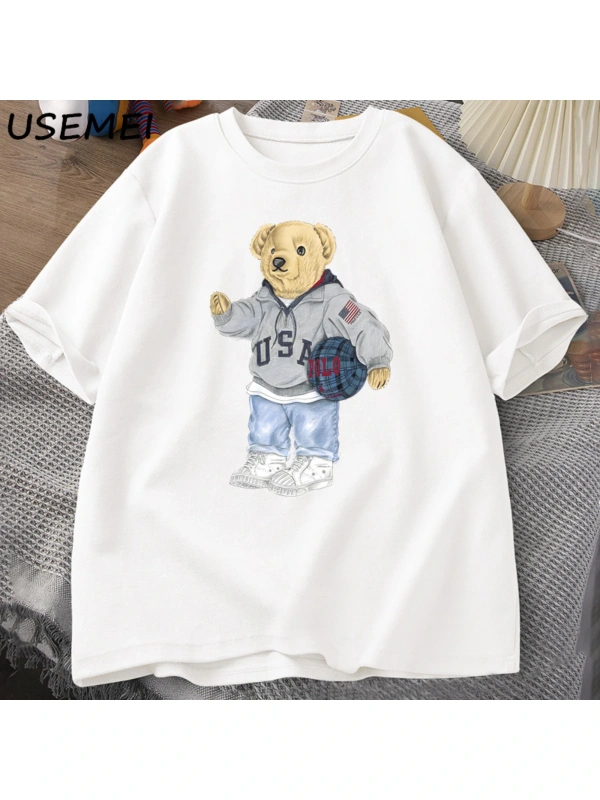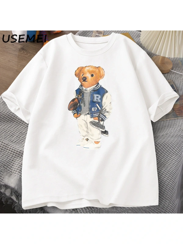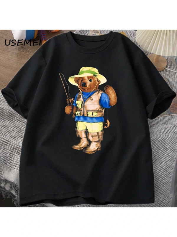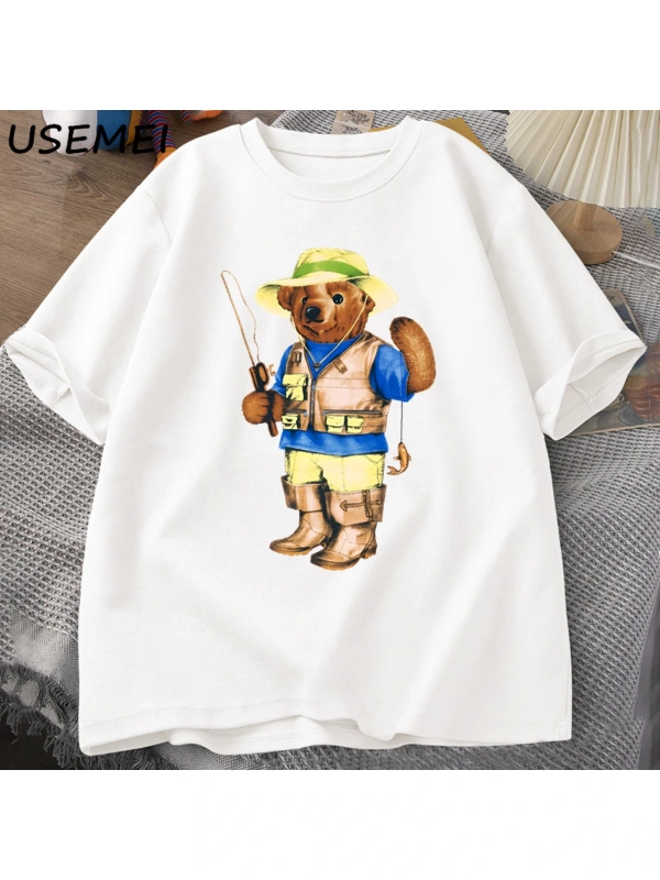 Classic Bear Print T Shirt Brand Men Summer Cotton T-shirt Short Sleeved Funny Graphic Tees C