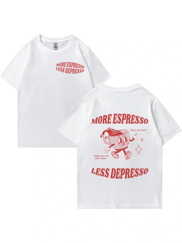 Daha Espresso az Depresso Meme T shirt komik erkek kadın Vintage karikatür T-shirt Pop Art pa