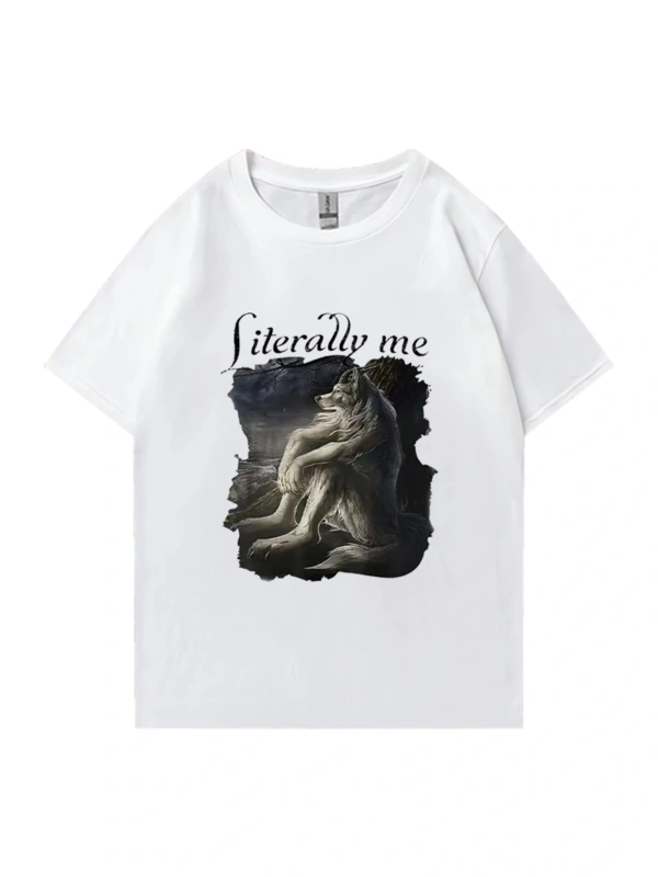 Oturan Kurt Kelimenin tam anlamıyla Bana Komik Meme T Erkek Kadın klasik tişört Gevşek
