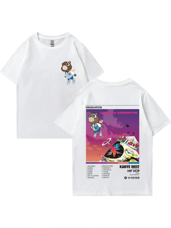 Rap Kanye West Mezuniyet Ayı Grafik T - Erkek Kadın Sıcak satış moda kıyafetler Saf Pa