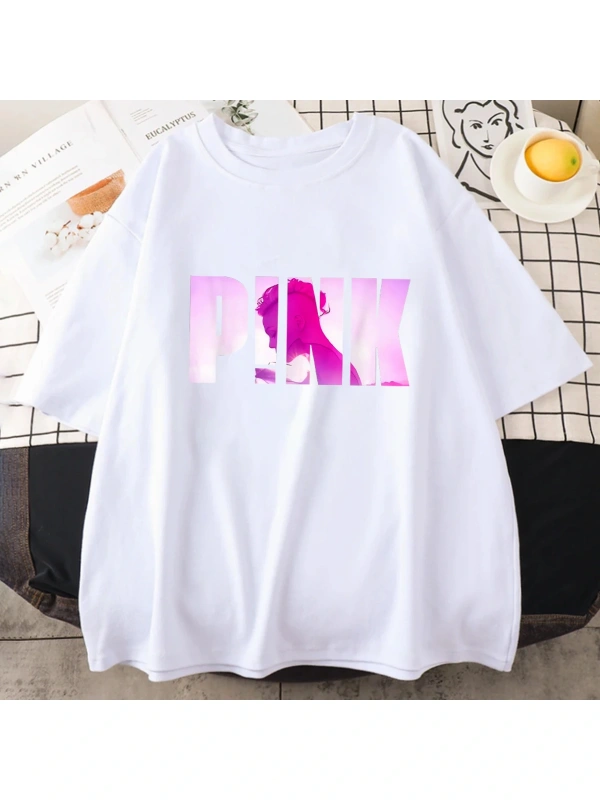 Şarkıcı P!nk pembe yaz rahat T shirt saf pamuk kısa kollu t-shirt erkekler kadınlar boy