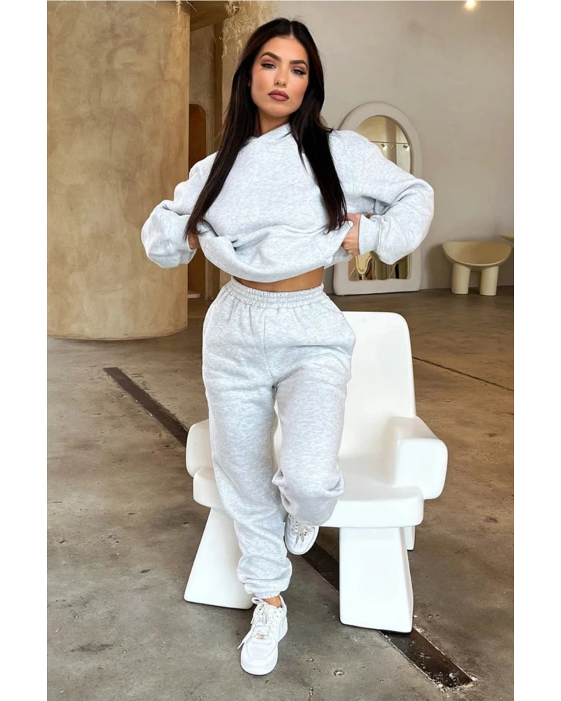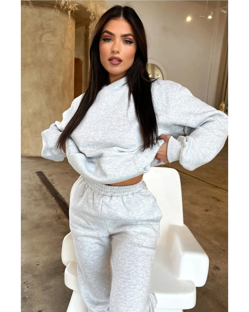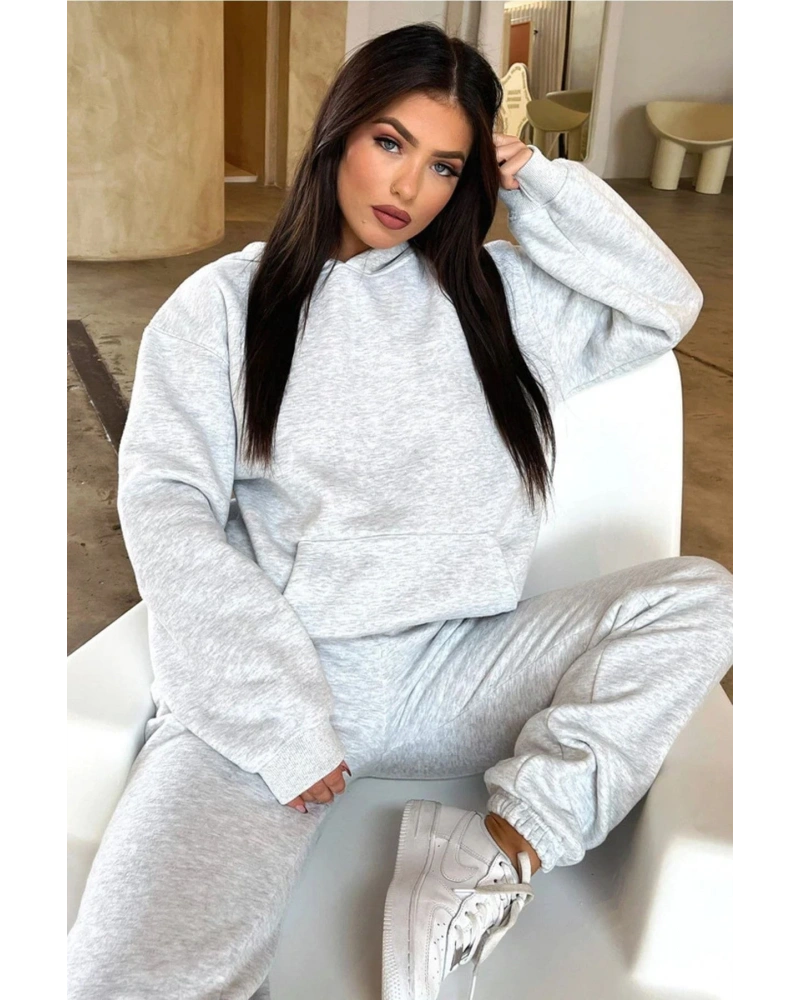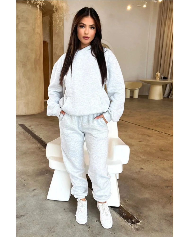 Düz Gri Dijital Baskılı Kışlık Unisex Eşofman Takımı