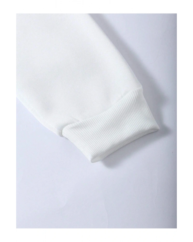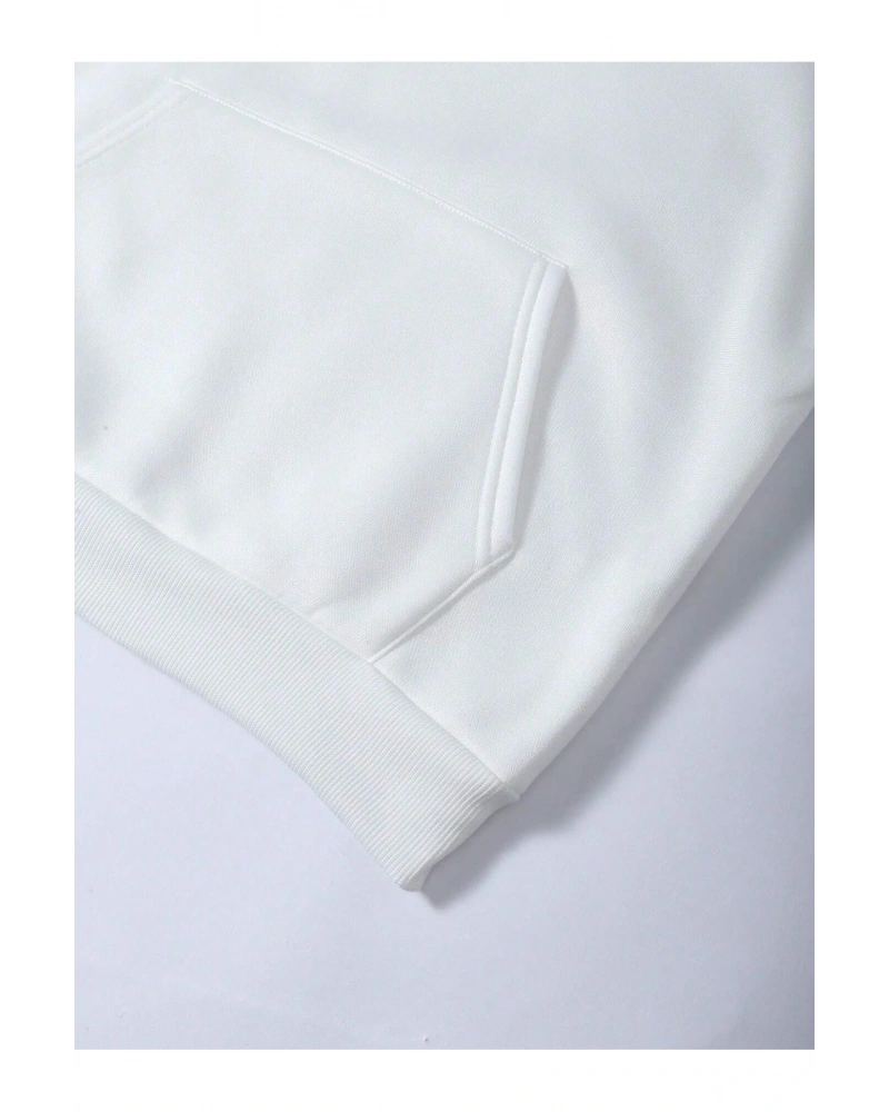 DÜZ Renkli Baskılı Oversize Kapüşonlu Sweatshirt Beyaz