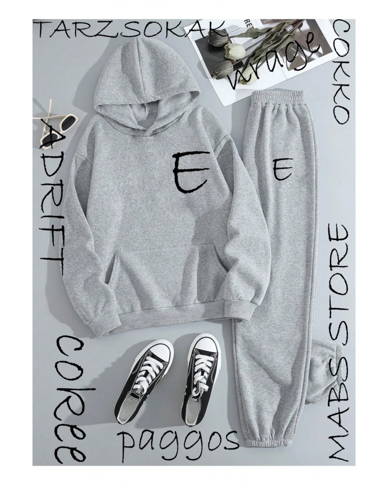 E harfli 2 li Kapşonlu Eşofman Takımı