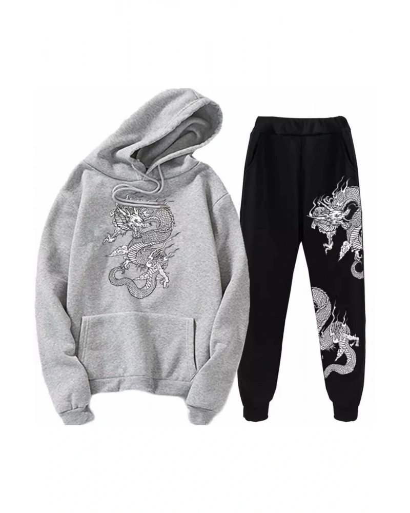 Ejderha Dijital Baskılı Kışlık Unisex Eşofman Takımı