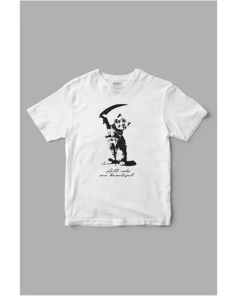 %100 pamuklu kumaş yapısı ile gün boyu konforlu bir kullanım sunar; Kısa kollu tasarımı, sıcak havalarda serinlik ve rahatlık sağlar; Regular kalıp sayesinde vücuda tam oturur ve hareket özgürlüğü tanır; Basic silueti ile günlük kullanım için idealdir; her türlü kombinle uyum sağlar; All cats are beautiful baskısı, şık ve eğlenceli bir görünüm kazandırır; Tüm yaş gruplarına hitap eden tasarımıyla geniş bir kullanıcı yelpazesine sahiptir; Type 1 yıkama talimatına uygun şekilde kolayca temizlenebilir; bakımı pratiktir; Standart boy uzunluğu, farklı vücut tiplerine uyum sağlayarak rahat bir kullanım sunar; Bisiklet yaka tasarımı modern ve sade bir stil oluştururken, baskılı detaylarla dikkat çeker;