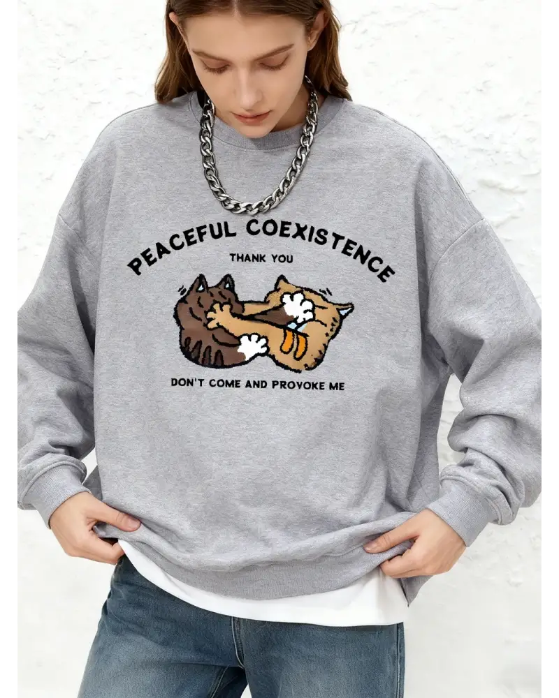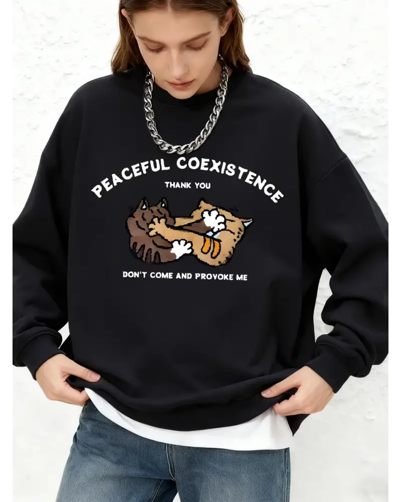 Barışçıl Bir Yaşam Ortaklığı Kedi Baskılı Kapüşonlu Kadın Basic Oversize Jogger Sweatshirt Uz, Tarzsokak kalitesiyle üretilmiş modern streetwear ürünüdür. oversize hoodie, sweatshirt, kapşonlu sweatshirt, streetwear hoodie kategorisinde öne çıkan bu model; rahat kalıbı, kaliteli kumaşı ve uzun ömürlü baskısıyla fark yaratır. Günlük kombinlerde stilinizi yansıtırken maksimum konfor sağlar. Hemen sipariş ver, uygun fiyat ve hızlı kargo avantajını yakala.