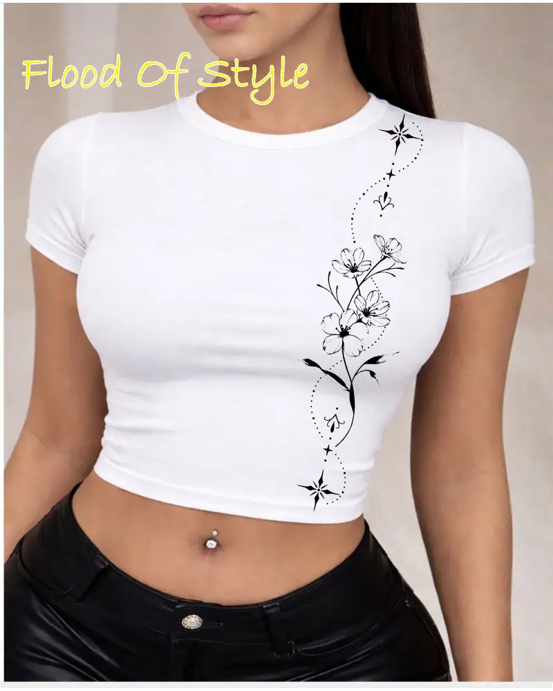 Beyaz Babby Tee gül yaprak dal Özel tasarım