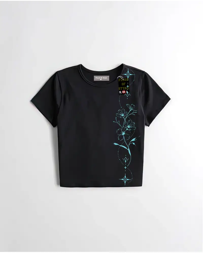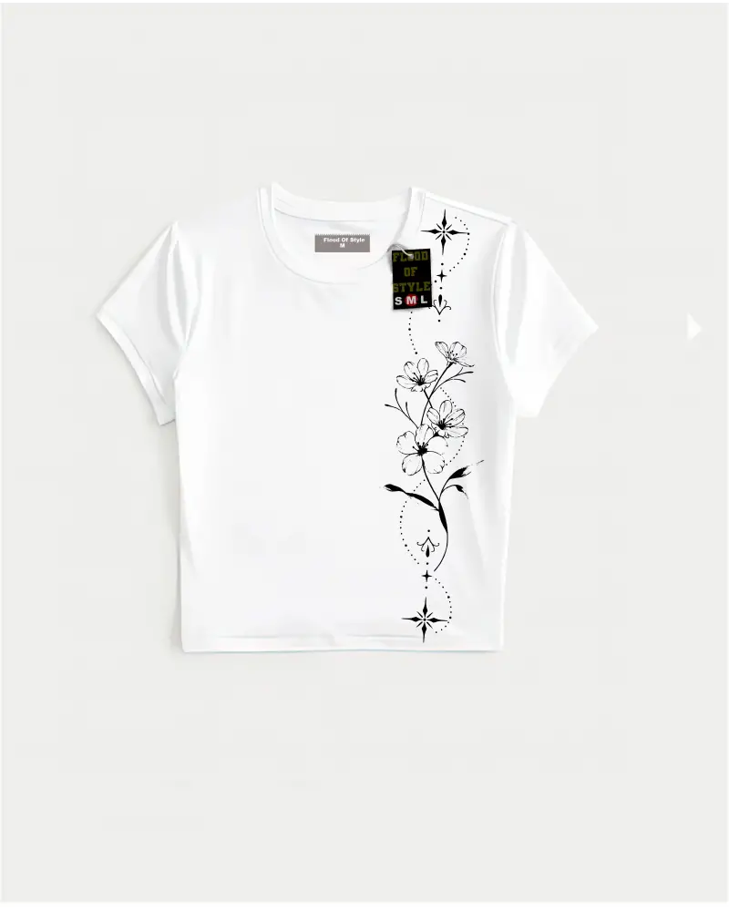 Beyaz Babby Tee çiçek dal yıldız Özel tasarım