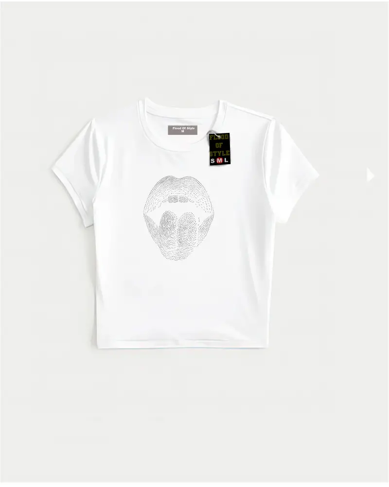 Beyaz Babby Tee taş desenli agız Özel tasarım