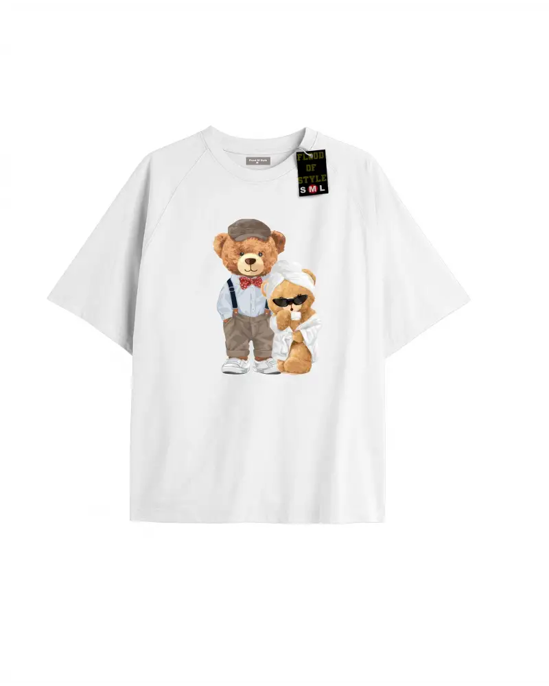 Beyaz Oversize T-shirt ayıcık bornoz Özel tasarım