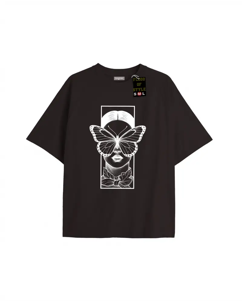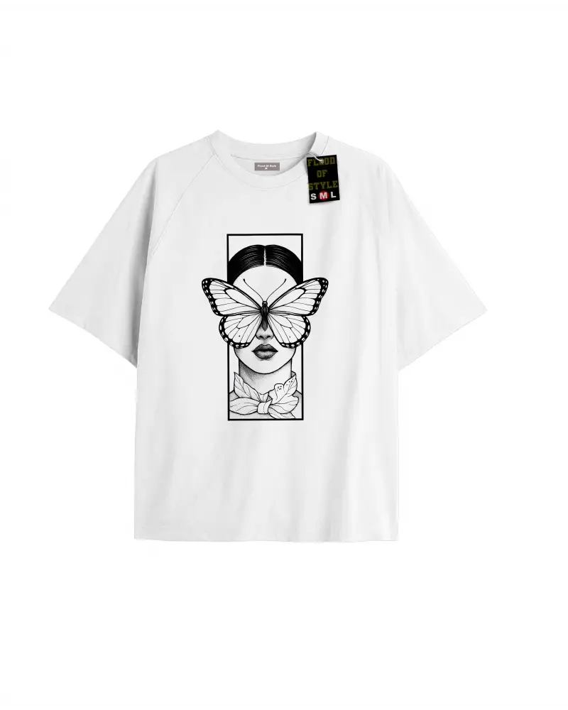 Beyaz Oversize T-shirt çerçeveyüzkelebek Özel tasarım
