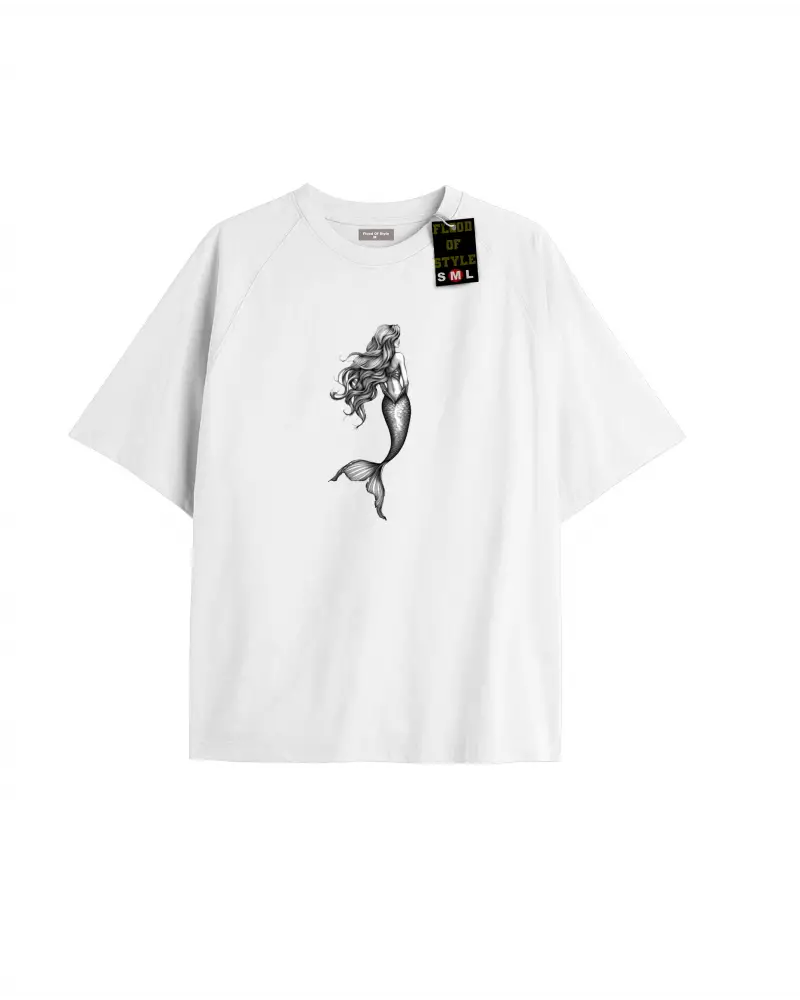 Beyaz Oversize T-shirt deniz kızı Özel tasarım