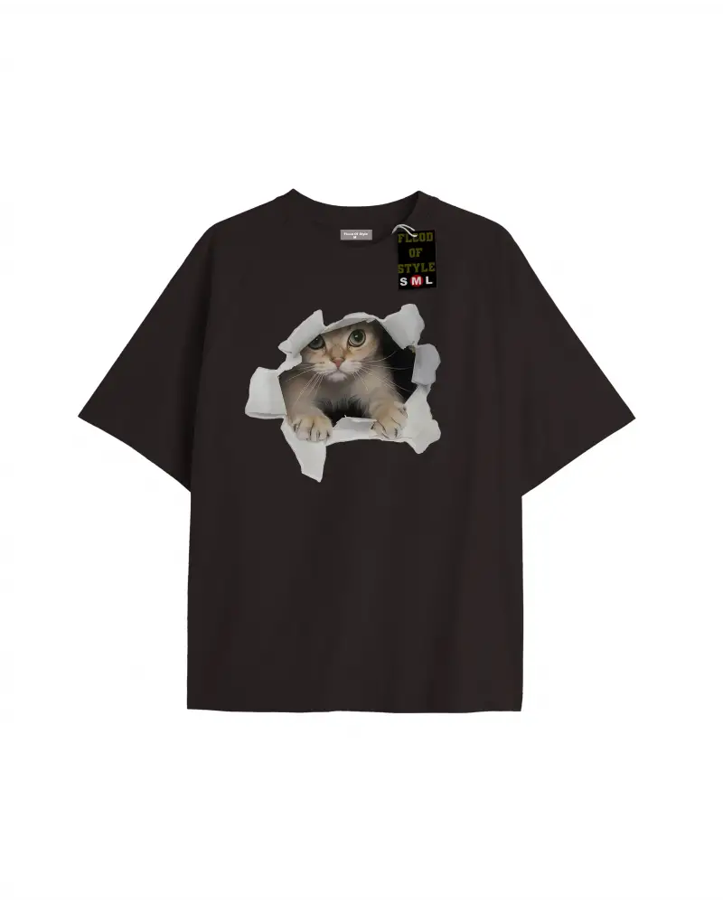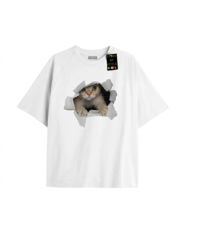 Beyaz Oversize T-shirt kedi Özel tasarım