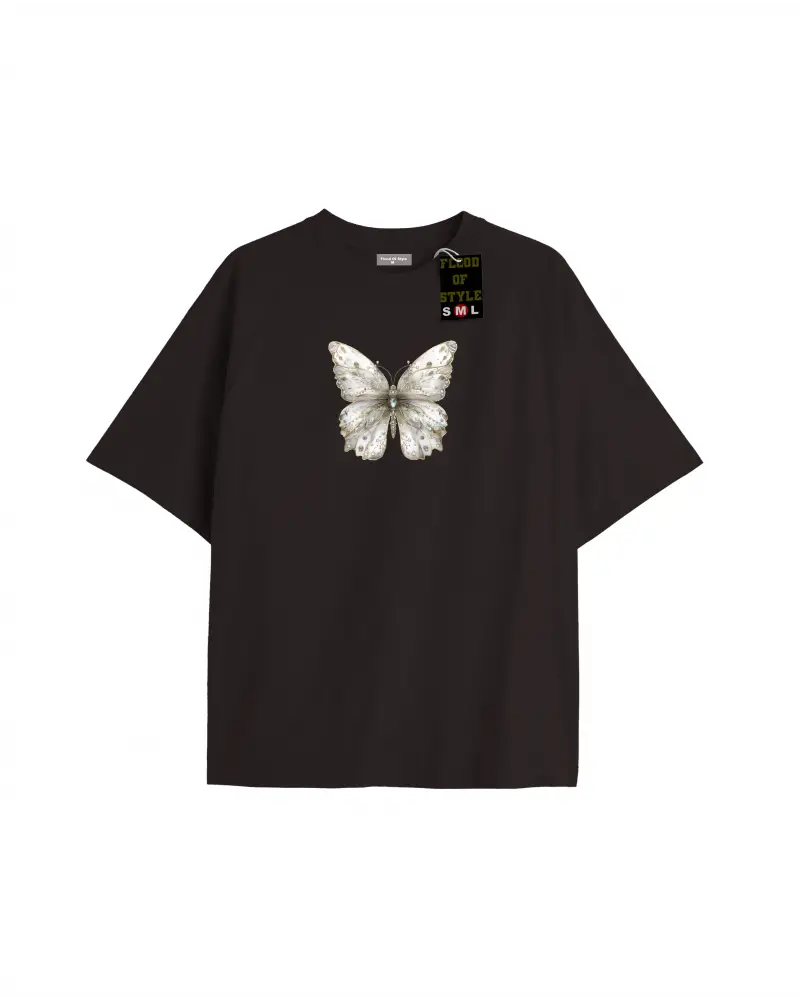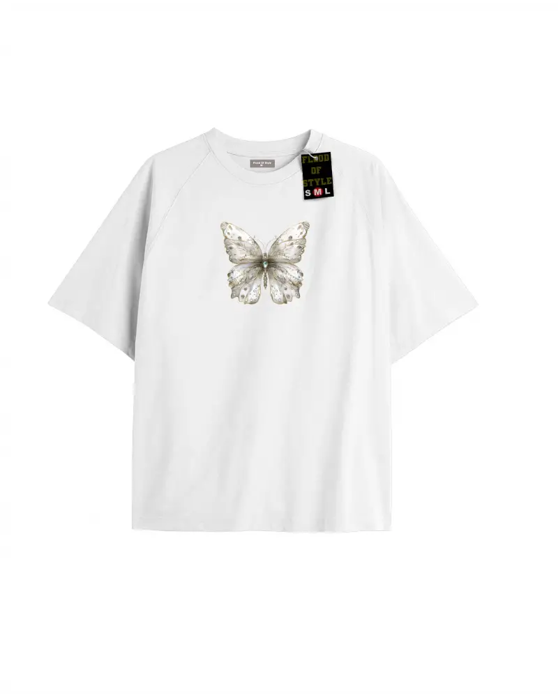 Beyaz Oversize T-shirt taş desenli kelebek Özel tasarım