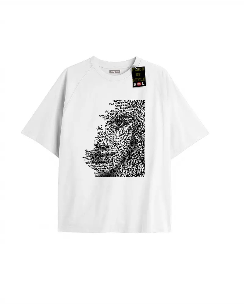 Beyaz Oversize T-shirt gözler Özel tasarım