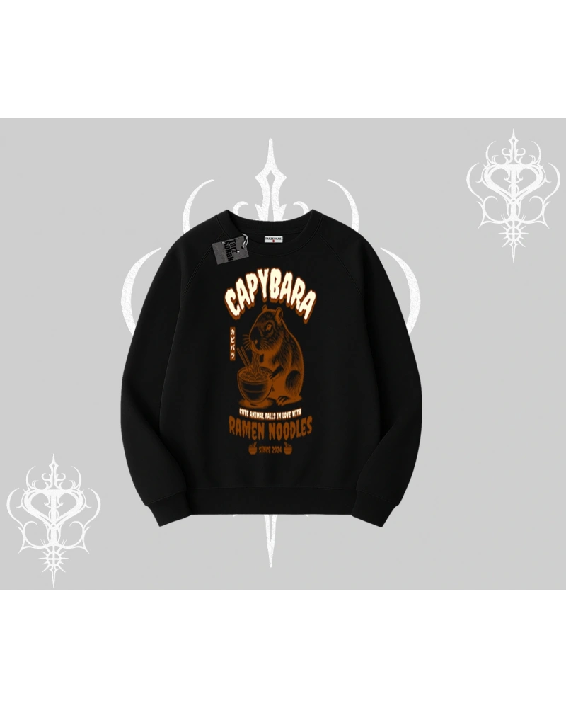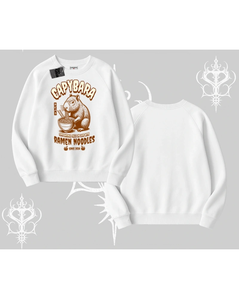 Biskilet Sweatshirt Cute Capybara Enjoying Ramen Noodles Artwork modeli; sokak modası, günlük kullanım ve trend kombinler için ideal yapısıyla Tarzsokak’ta uygun fiyat ve hızlı kargo avantajıyla sunulmaktadır.