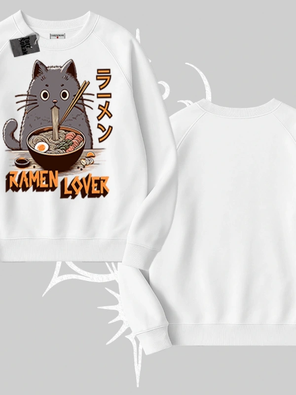 Biskilet Sweatshirt Ramen Lover Kedi Anime Baskılı