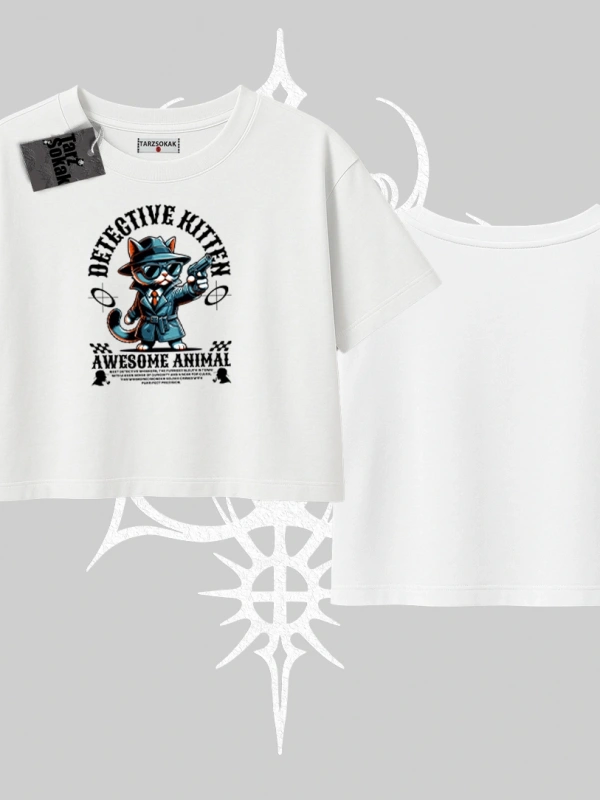 Detective Kitten Kedi Baskılı Oversize Crop Tshirt