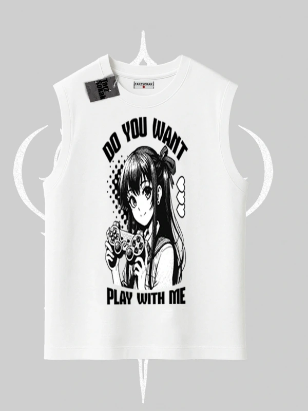 Kolsuz Tshirt Do You Want Play With Me Anime Kız Baskılı