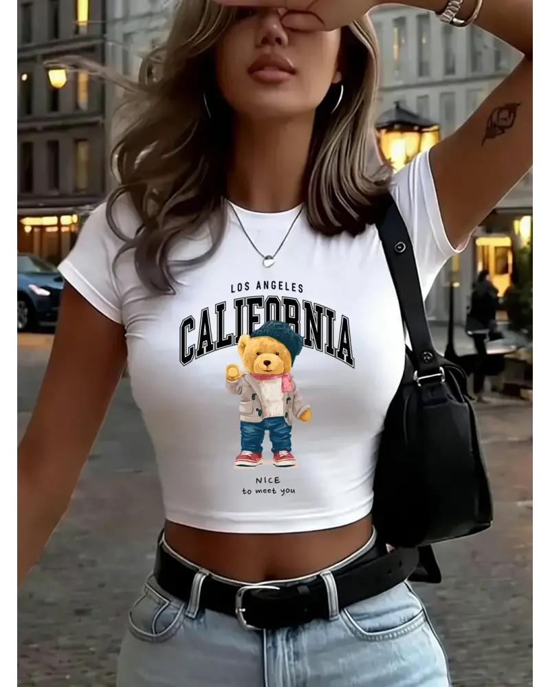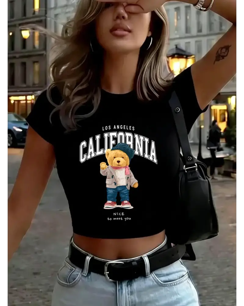 Güzel Tanışmaktayım Sevimli Ayı Baskılı Kadın Babby TeeTişörtleri Yazlık Yüksek Esnek Yumuşak Üst kaliteli malzeme ve konforlu kullanım sunan bir üründür. Günlük kullanım için ideal olup uygun fiyat ve hızlı kargo avantajıyla sunulmaktadır.