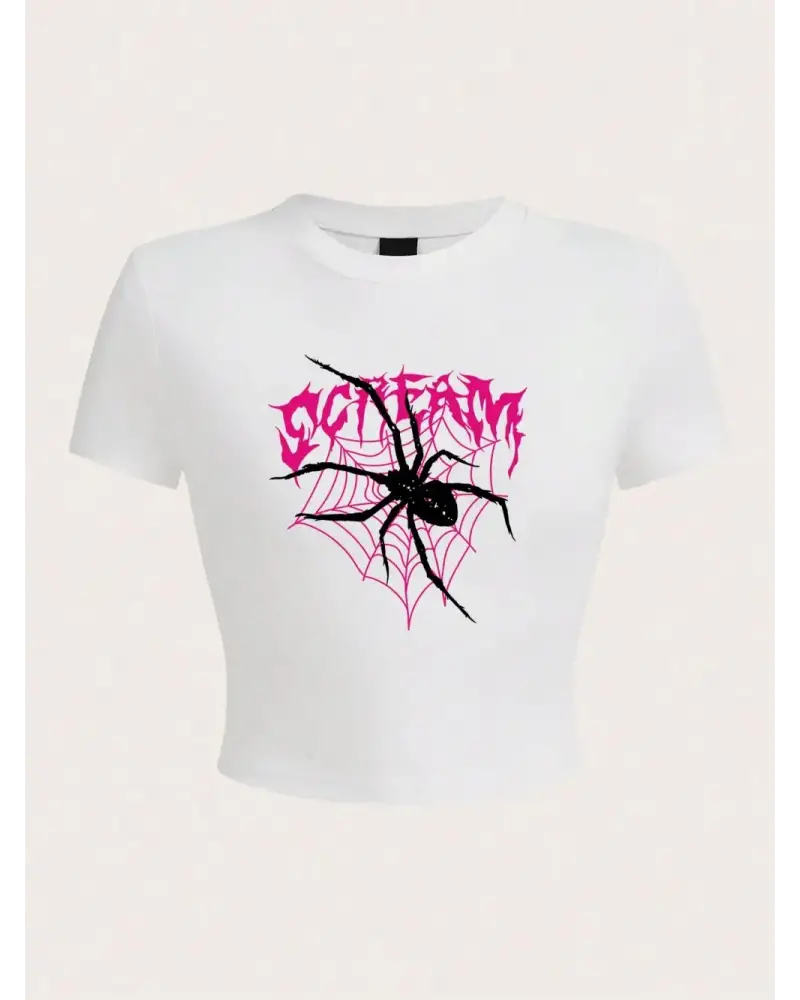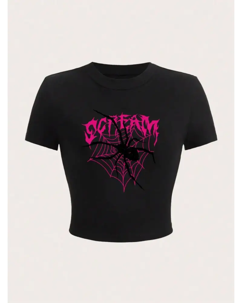 Harajuku kadın kırpma üst Scream örümcekler örümcek ağları baskı Tee gömlek rahat o-boyun yum kaliteli malzeme ve konforlu kullanım sunan bir üründür. Günlük kullanım için ideal olup uygun fiyat ve hızlı kargo avantajıyla sunulmaktadır.