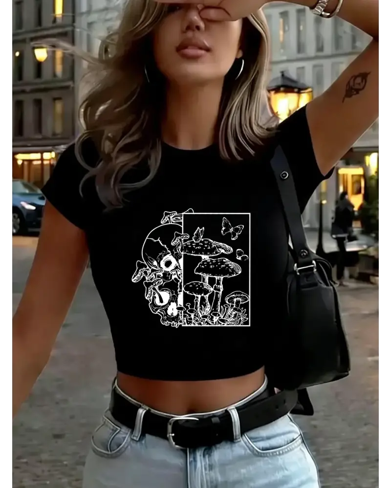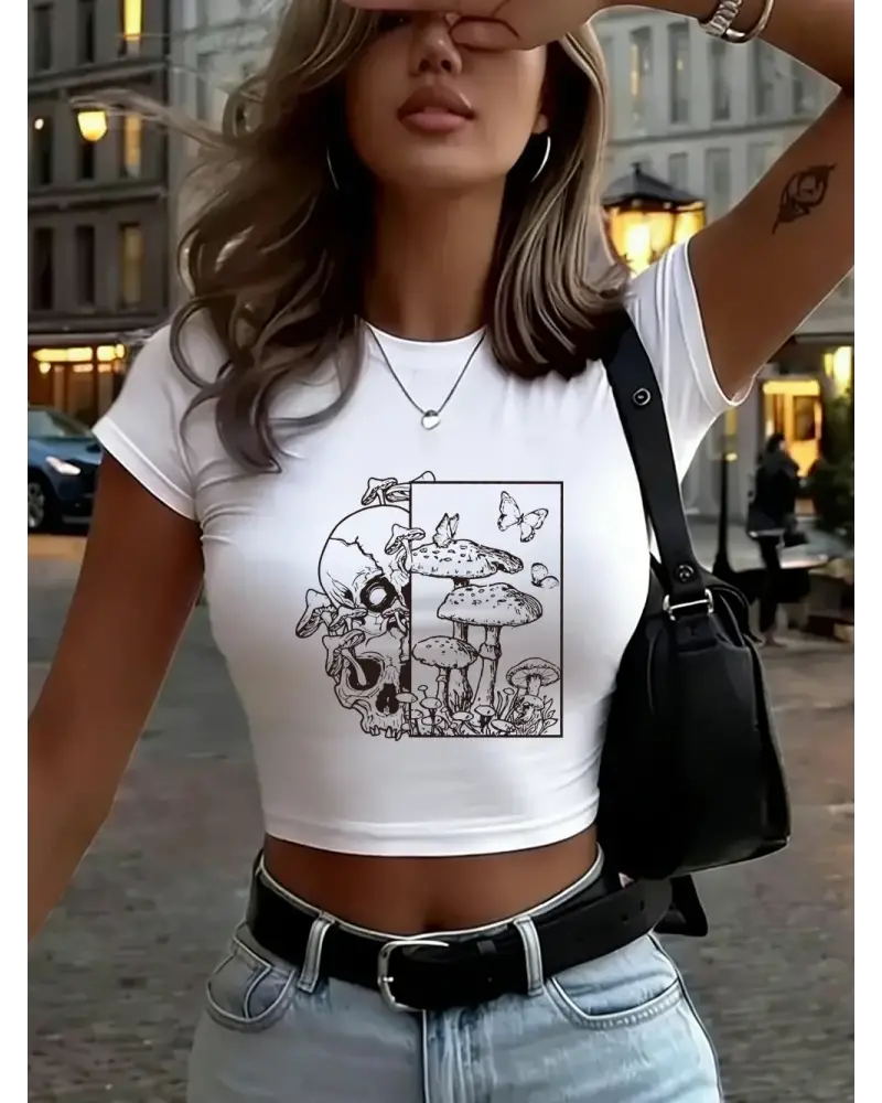 İskelet Mantar Kelebek Baskılar Kadın Kırpma T-Shirt Yaz Yüksek Elastik Yumuşak Üstler İnce K kaliteli malzeme ve konforlu kullanım sunan bir üründür. Günlük kullanım için ideal olup uygun fiyat ve hızlı kargo avantajıyla sunulmaktadır.