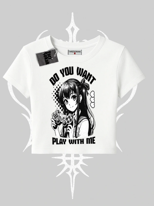 Babby Tee Tshirt Do You Want Play With Me Anime Kız Baskılı