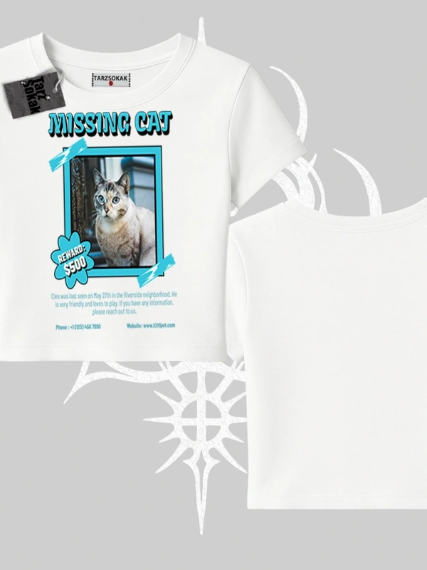 Missing Cat Baskılı Babby Tee Tshirt