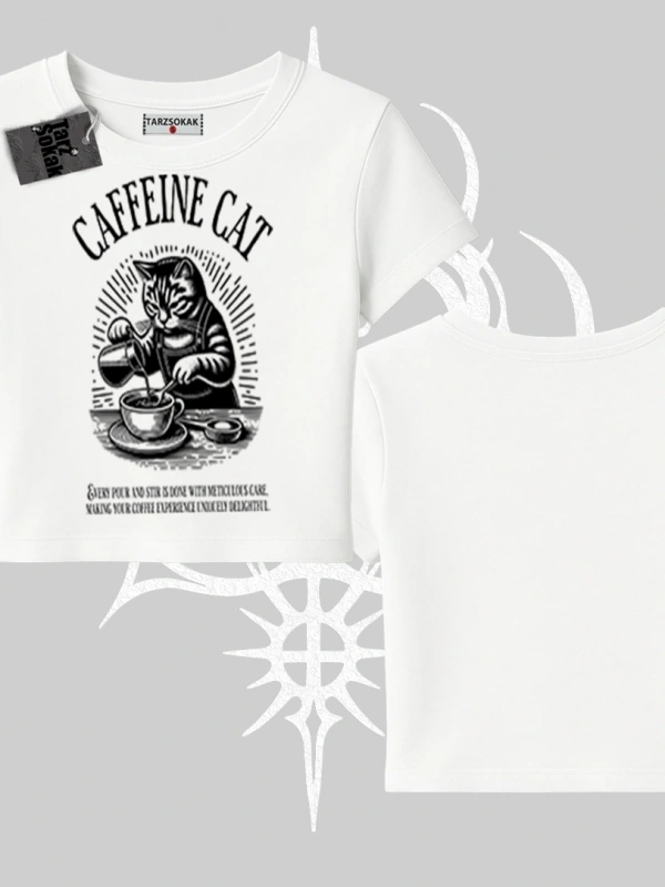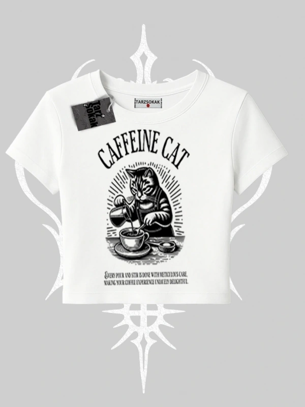 Babby Tee Tshirt Caffeine Cat Kahve Temalı Kedi Baskılı