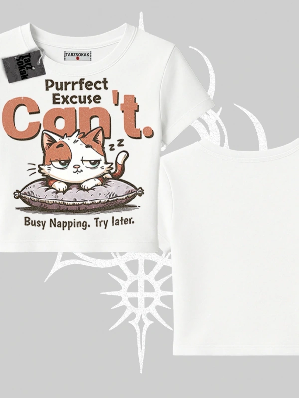 Kedi Baskılı Cant Busy Napping Y2K Babby Tee Tshirt