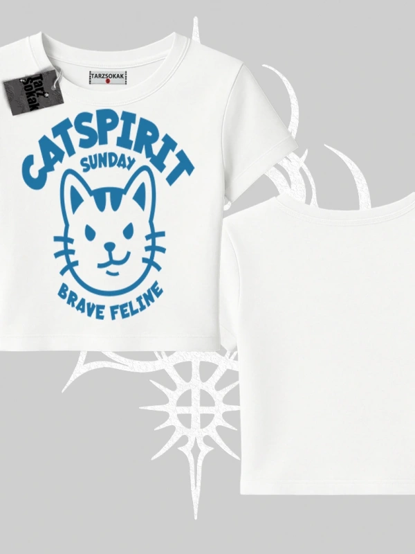 Catspirit Sunday Brave Feline Yazılı Kedi Baskılı Babby Tee Tshirt