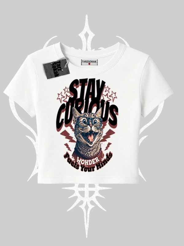 Stay Curious Kedi Baskılı Babby Tee Tshirt