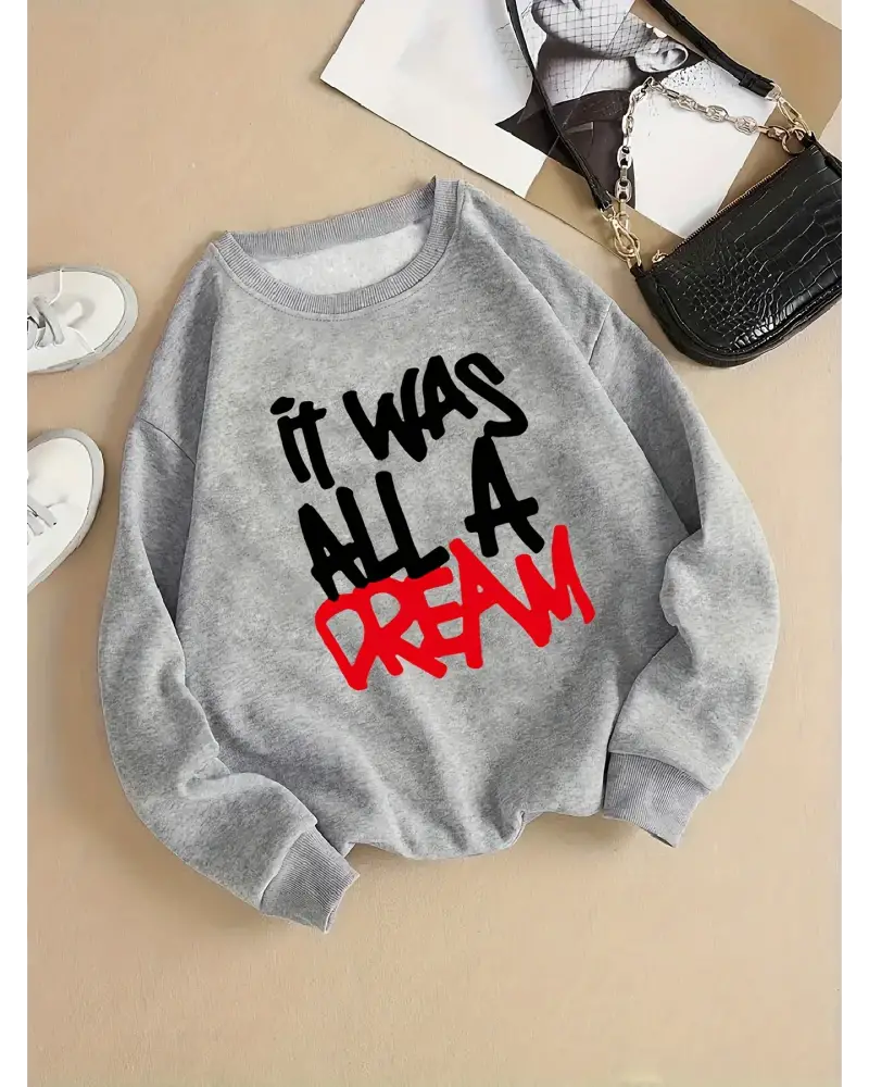 Kadınlar rahat rahat kazak oldu bir rüya baskılar kazak moda sıcak giyim gevşek Crewneck pola, Tarzsokak® tarafından yerli üretim anlayışıyla tasarlanmıştır. Kadın giyim koleksiyonunda yer alan bu ürün, streetwear modasına uygun modern tasarımı ve konforlu kalıbıyla öne çıkar. Günlük kullanıma uygun yapısı sayesinde uzun süreli rahatlık sunar. Kaliteli kumaşı, dayanıklı dikiş yapısı ve zamansız stiliyle Tarzsokak.com güvencesi altında hızlı kargo ve güvenli ödeme avantajlarıyla satışa sunulmaktadır.