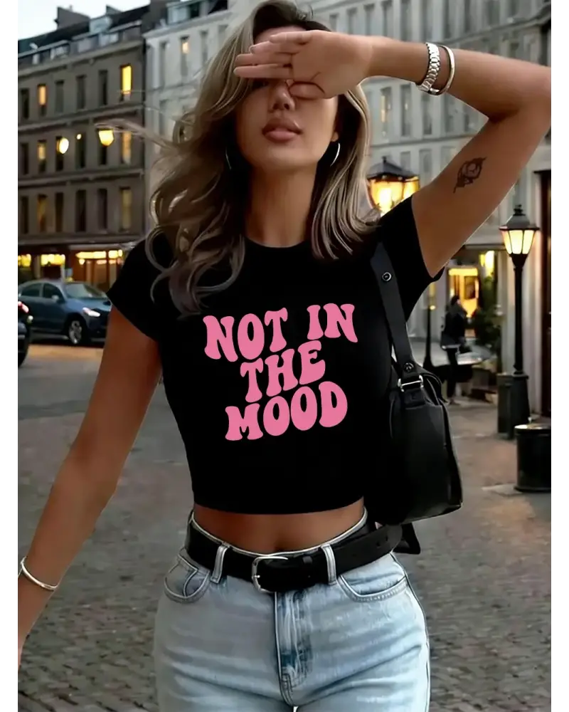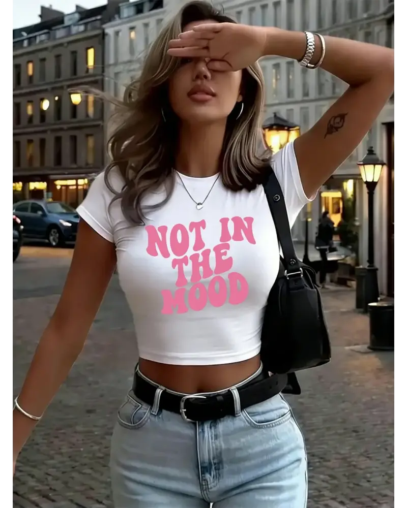 Not In The Mood Baskılı Kadın Babby TeeTişörtleri Yazlık Yüksek Esnek O-Yaka Üstler Seksi Dar Kes kaliteli malzeme ve konforlu kullanım sunan bir üründür. Günlük kullanım için ideal olup uygun fiyat ve hızlı kargo avantajıyla sunulmaktadır.