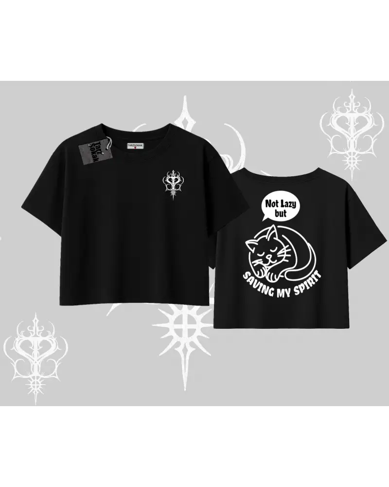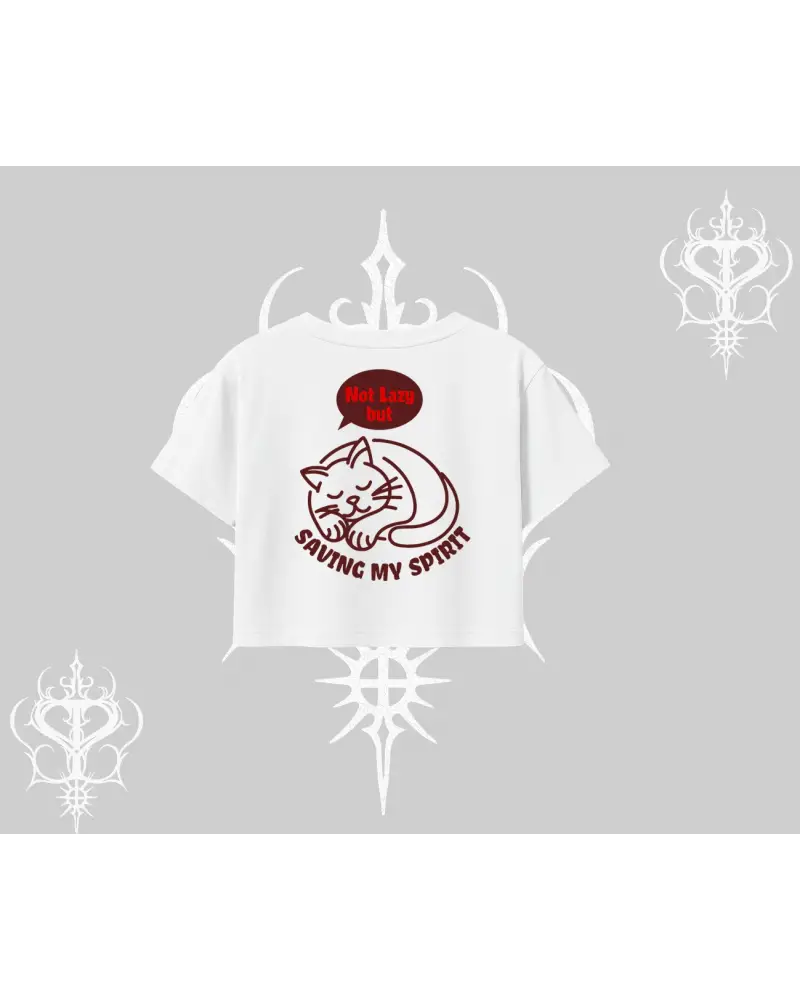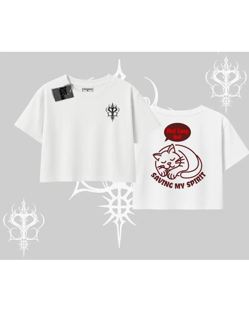 Not Lazy Saving My Spirit Kedi Baskılı Oversize Crop Tshirt modeli; sokak modası, günlük kullanım ve trend kombinler için ideal yapısıyla Tarzsokak’ta uygun fiyat ve hızlı kargo avantajıyla sunulmaktadır.