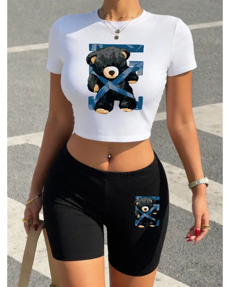 Seksi Bağlı Siyah Ayı Baskılı Babby TeeT-Shirt Şort Kadın Yaz İki Parçalı Set Üstleri Pantolon Yü kaliteli malzeme ve konforlu kullanım sunan bir üründür. Günlük kullanım için ideal olup uygun fiyat ve hızlı kargo avantajıyla sunulmaktadır.