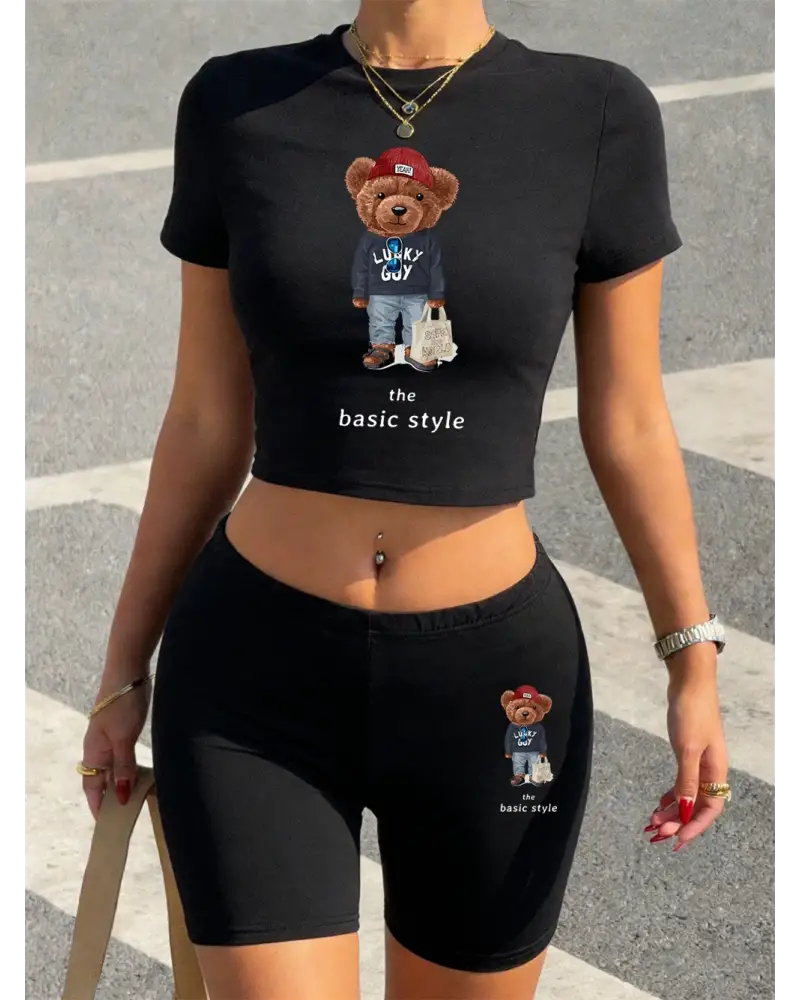 Sevimli Ayılar Baskılı Yaz Kıyafetleri Kırpılmış Tişörtler Şortlar Kadın İki Parçalı Set Üstl kaliteli malzeme ve konforlu kullanım sunan bir üründür. Günlük kullanım için ideal olup uygun fiyat ve hızlı kargo avantajıyla sunulmaktadır.