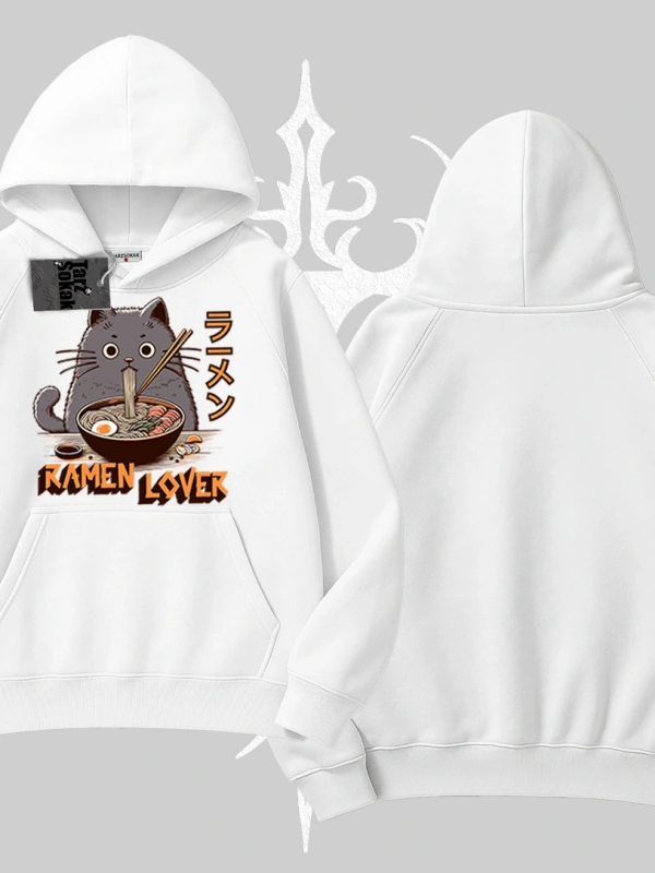 Kapşonlu Sweatshirt Ramen Lover Kedi Anime Baskılı